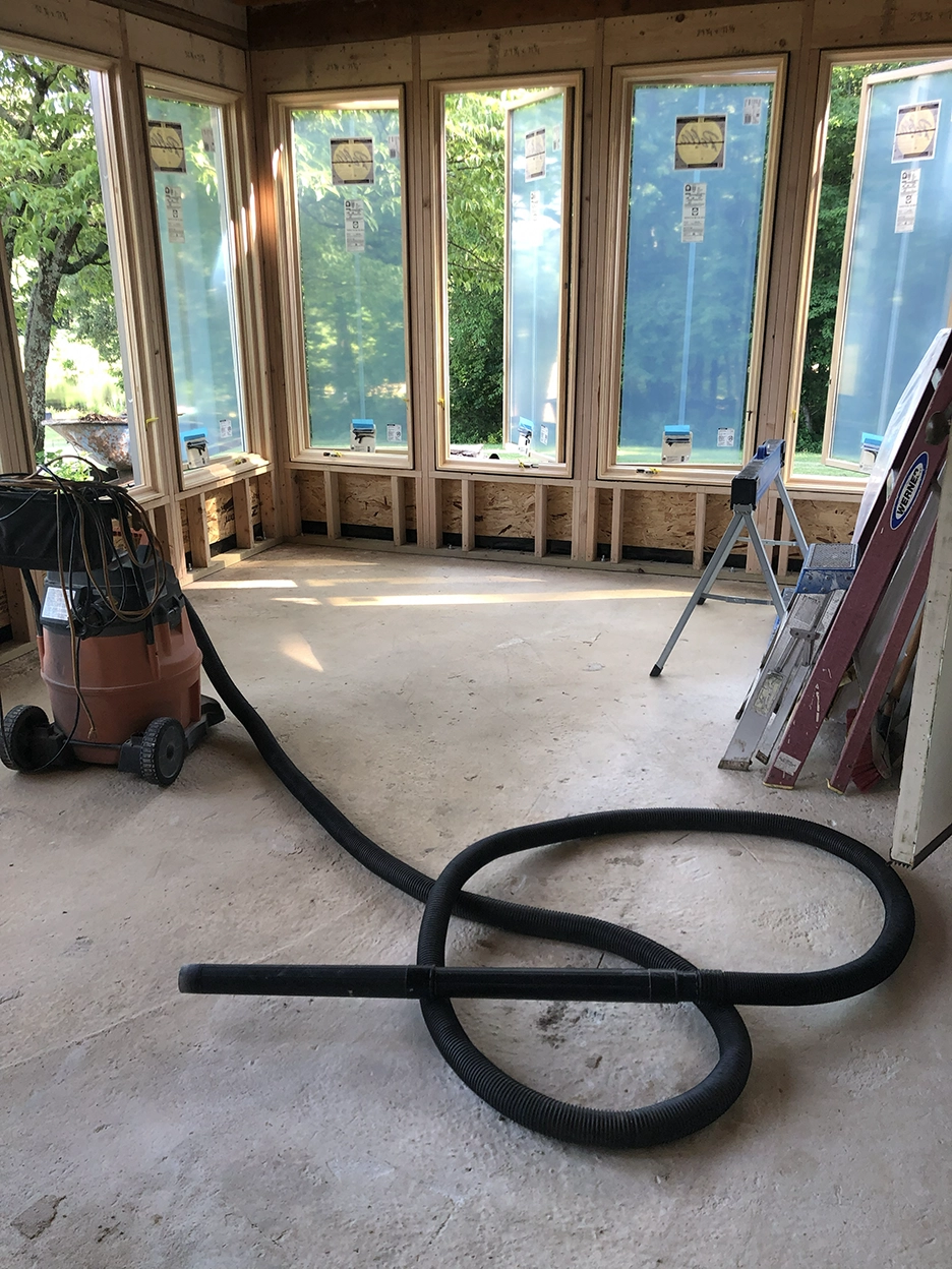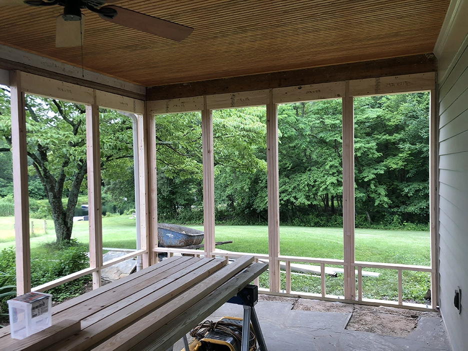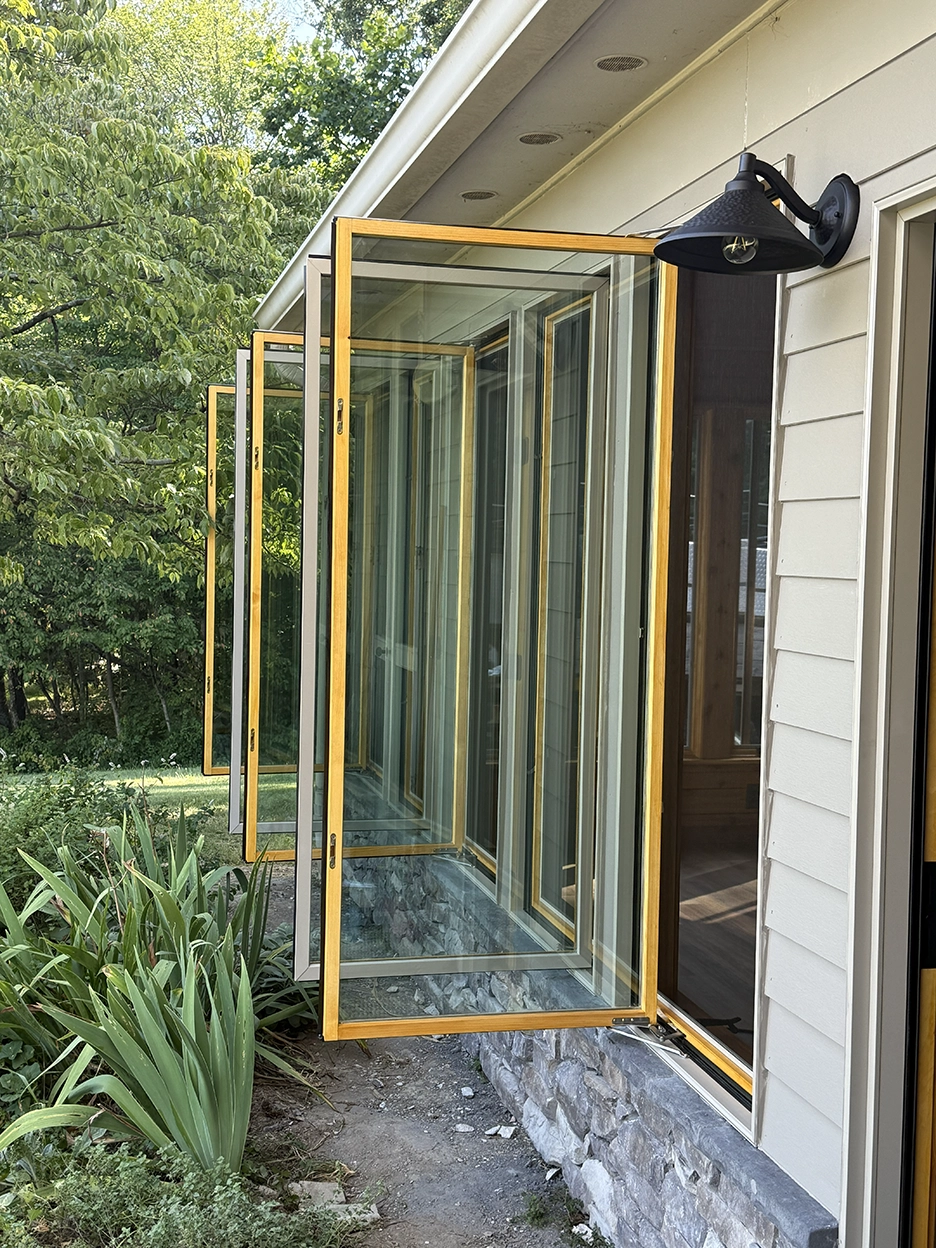 This late-summer project marks another rewarding collaboration with longtime clients who have entrusted Harmon Builders with a variety of improvements to their home over the years (e.g., a pool enclosure/pool room, a farm-to-table kitchen, and Butler’s Pantry Cabinetry). Paul Harmon and sons, Jesse and Emerson, transformed an underused exterior porch into a fully enclosed, conditioned sunroom designed for year-round comfort.